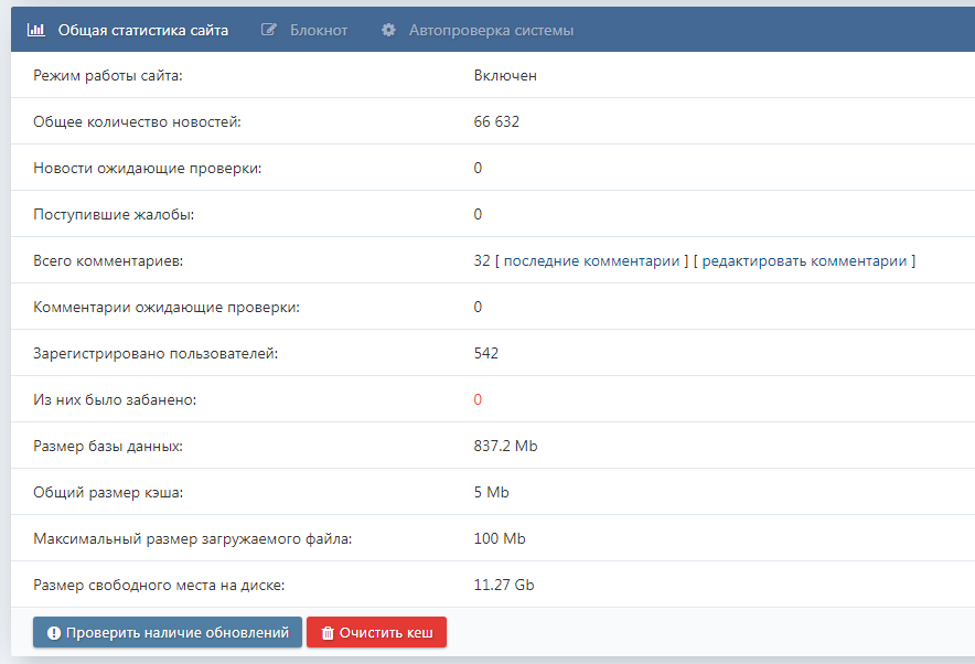 3. В админпанели, нужен блок оперативной информации, по типу как в DLE