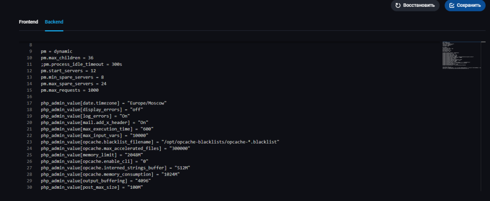 Например ondemand изменил на dynamic, да и остальные параметры для работы трёх сайтов, поэтому между ними распределены ресурсы, в основном для кеша.
