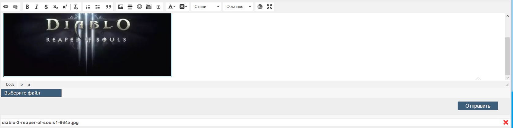 а загрузка файла у нас есть, картинки вставлять из него это уже другое дело